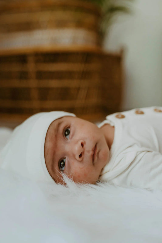 Sold outNEWBORN KNOT HAT - SOFT WHITE